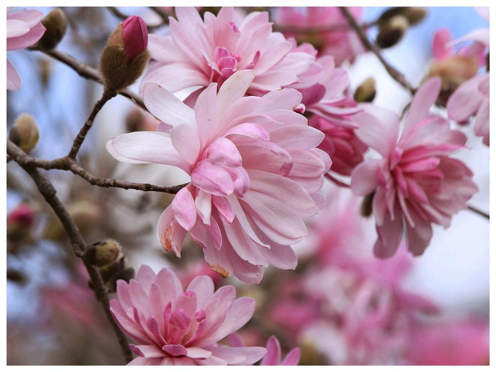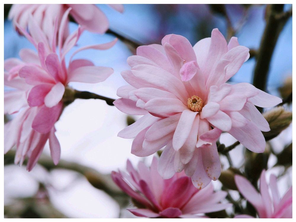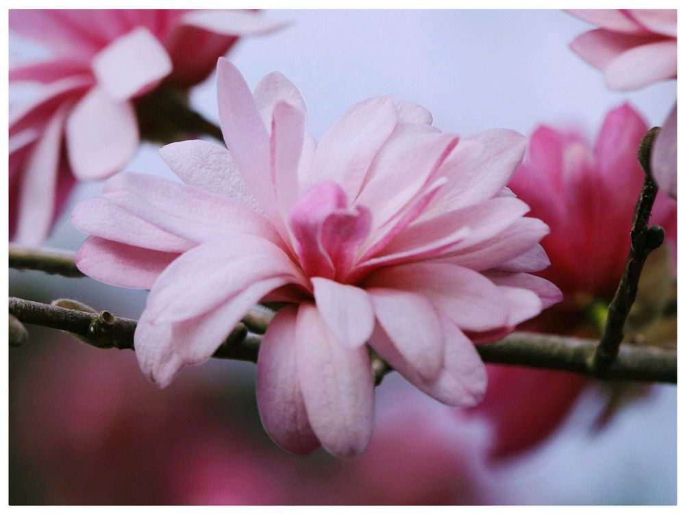 普通のコブシよりも花弁が多く、それが良い感じに波打ち、薄桃色が更に映えますね👍🎶