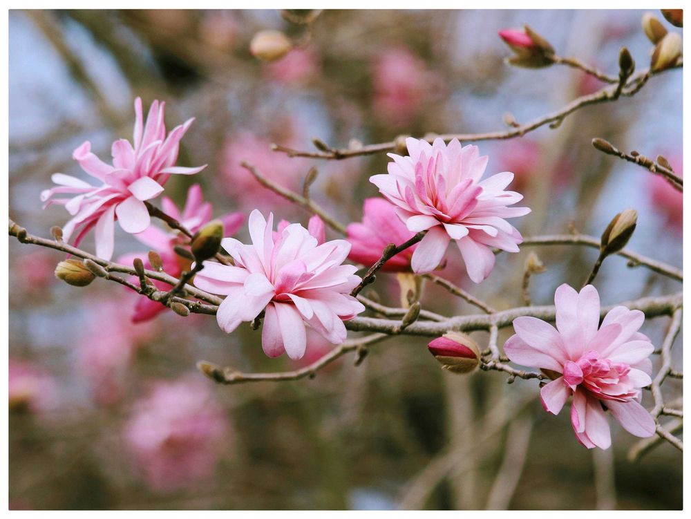 普通の白いコブシも好きですが、華やかな上品さが魅力のシデコブシもよき〜💕