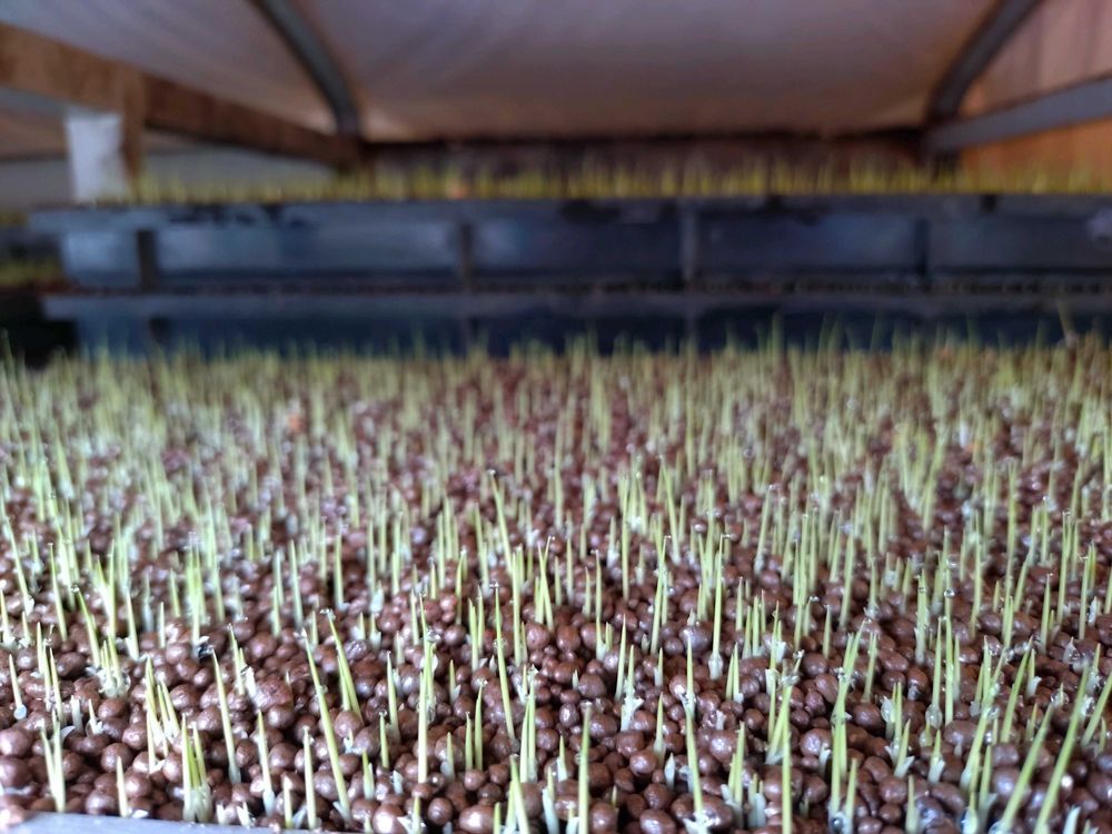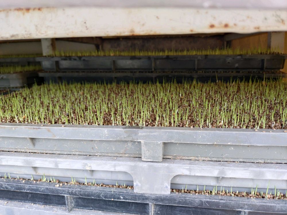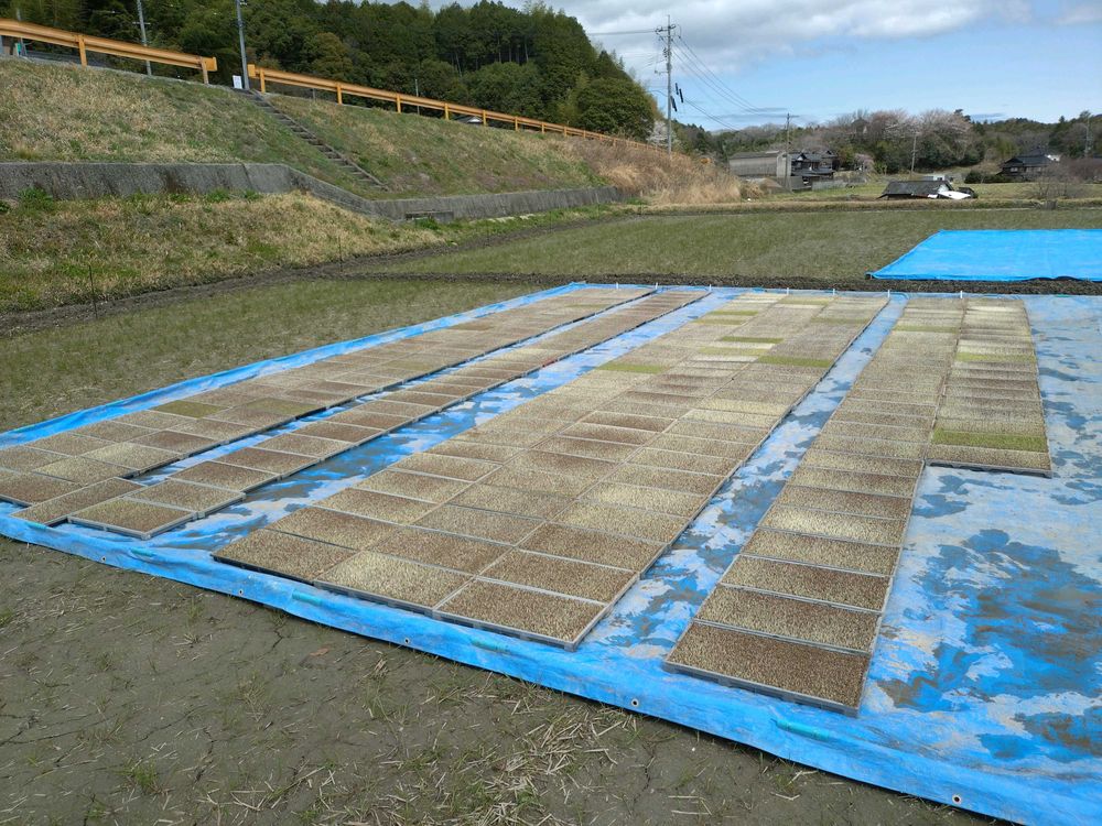 籾蒔きから3日、発芽が揃ってきたので育苗器から出して田んぼへ並べました🌾