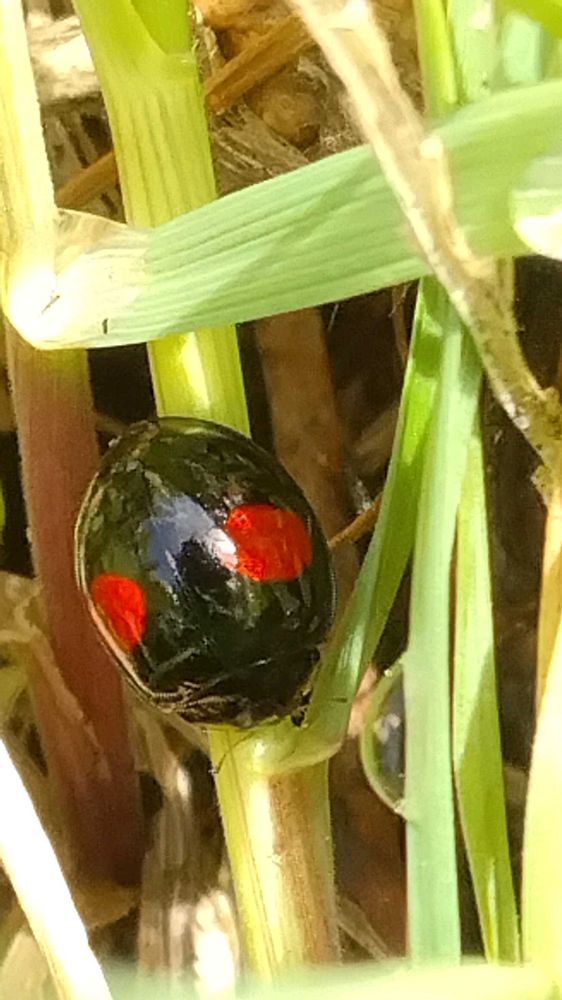 5⃣草むらから赤い二つ星のナミテントウが顔を見せてくれました