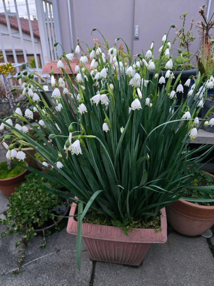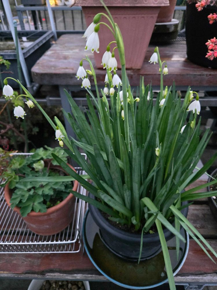 鉢植えでこんなに沢山スノーフレーク咲いてくれるのですね😍😳肥料でしょうか?鉢植えでこんなに沢山咲いてくれると嬉しいですね〜🎶🎶🎶🥰