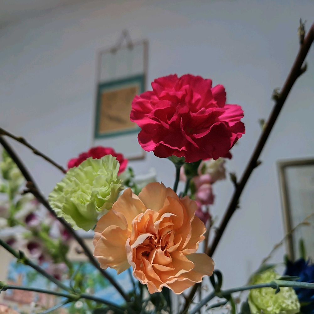 5️⃣玄関のカーネーションの花で…💛🧡💚🩷❤️🌱🌿