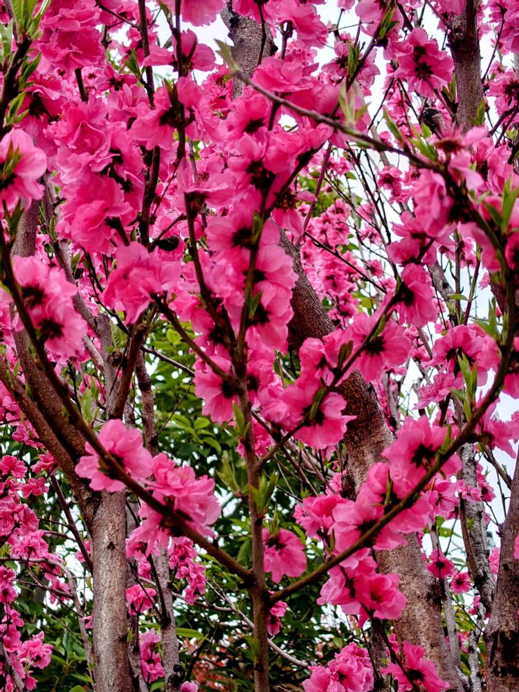 今日の昼休み、近くを散歩途中に見かけたハナモモ。