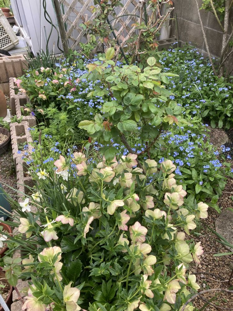 ワァー、クリスマスローズさんと忘れな草さん、モリモリだねぇ~💕