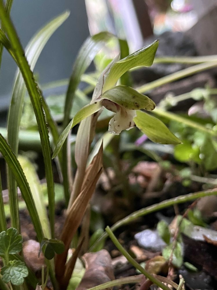 目立ちませんが春蘭が咲きました🌿緑色の葉と緑色のお花です❣️