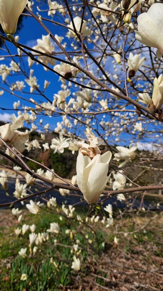 ハクモクレンさん 青空に映えますね☀️🤍💙