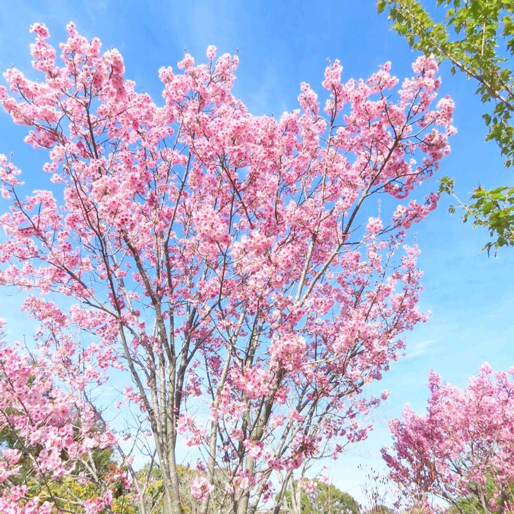 こんにちは、青い空にピンクの🌸陽光ざくら素敵ですね💓