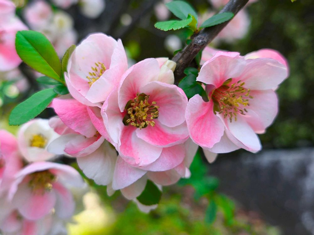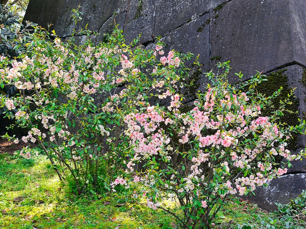 今日は皇居東御苑内の石垣のそばで咲いていた木瓜(ぼけ)を🆙します🙋