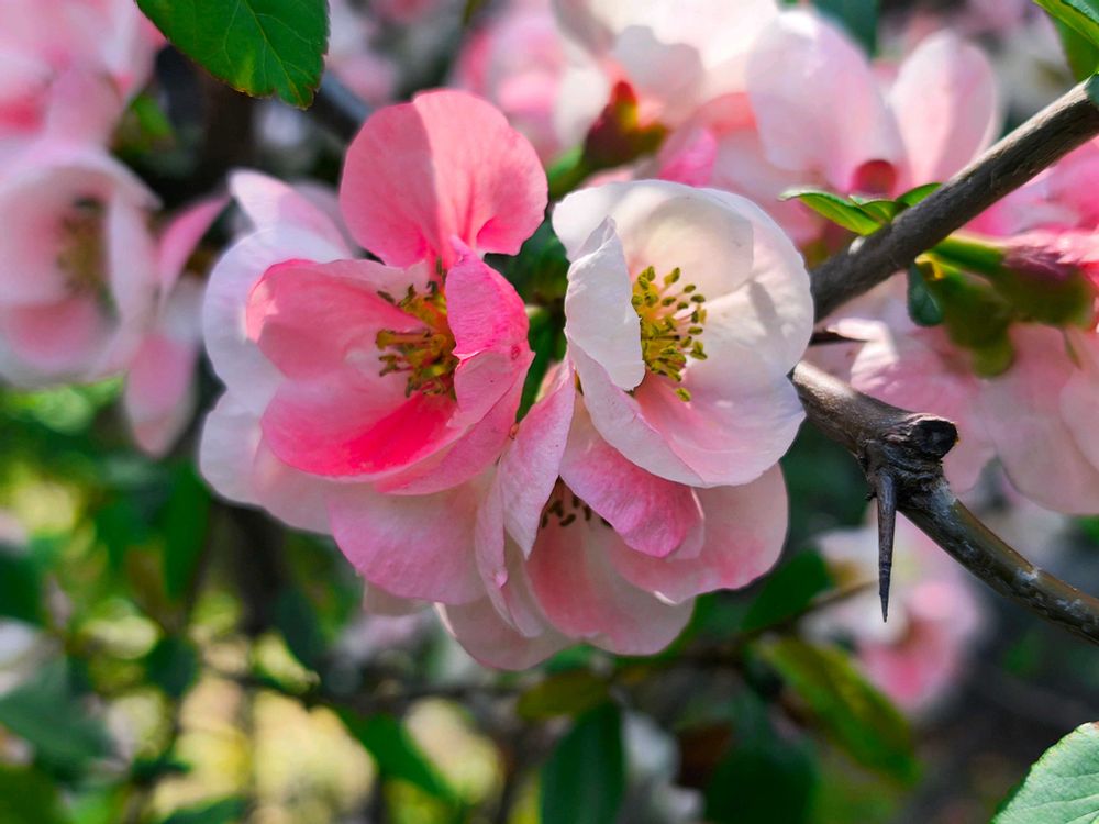 ピンク🩷と白🤍のグラデーションが綺麗な木瓜ですね♪