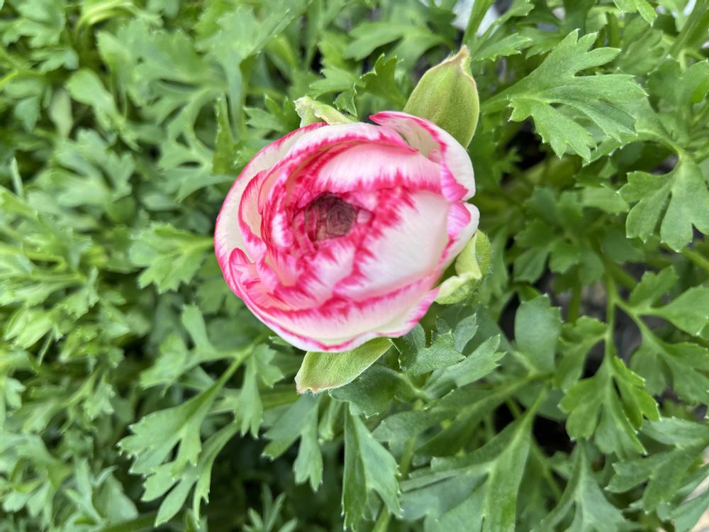 ラナンキュラスです。白に少し赤が入っていますねー♪