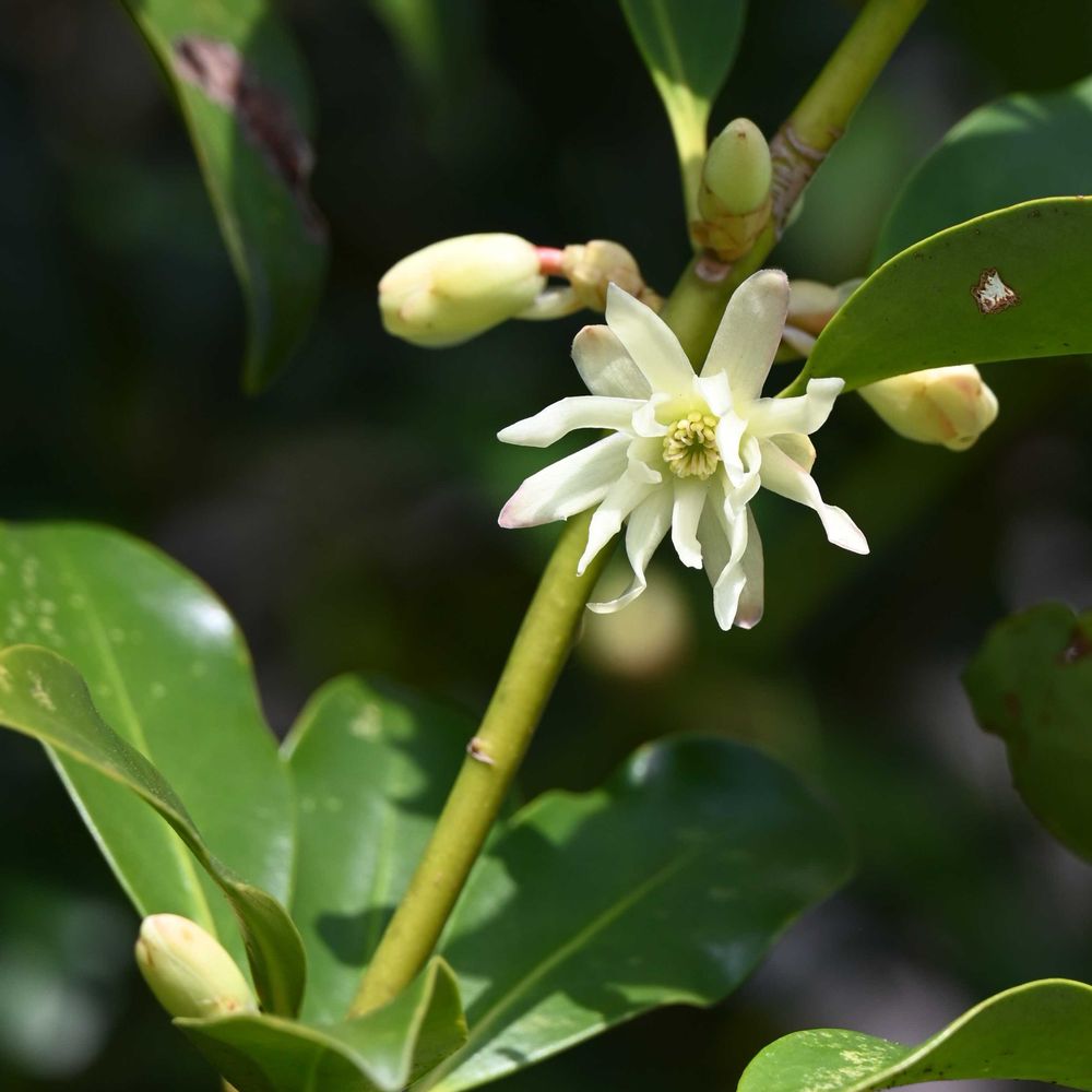 シキミの花は保護色ですが、美しい花姿ですね💛💚✨🎶