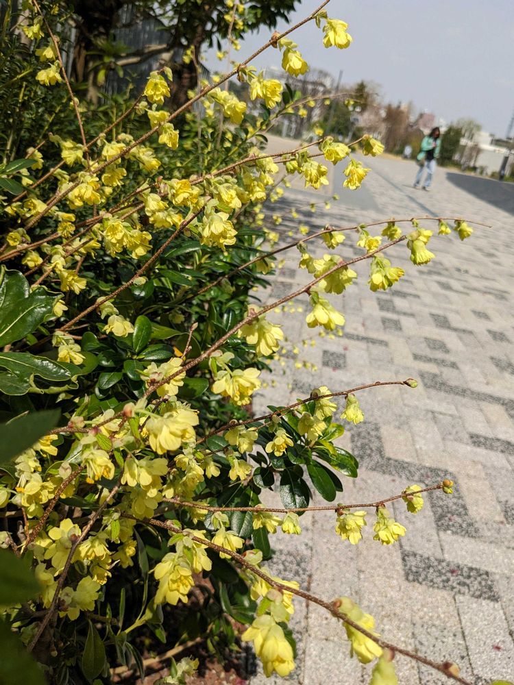 3月27日、はやる気持ちを抑えつつ国立競技場に向かうと、予想通り、たくさんのヒュウガミズキが咲いてました💛