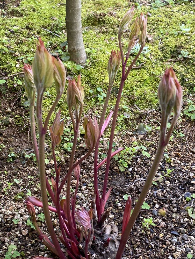 5日前まで、赤い芽がチョコンと見えていただけなのに、アッというまに15センチほどの高さになっています。成長の早さにビックリ😳‼️
