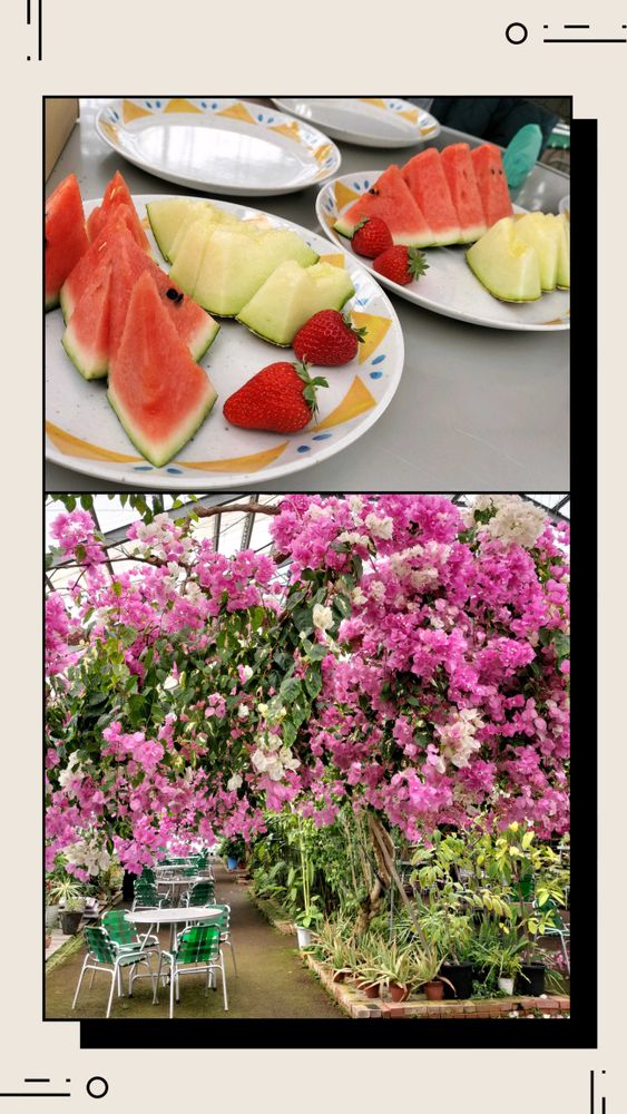 綺麗な花の下でフルーツ盛り🍉🍈🍓