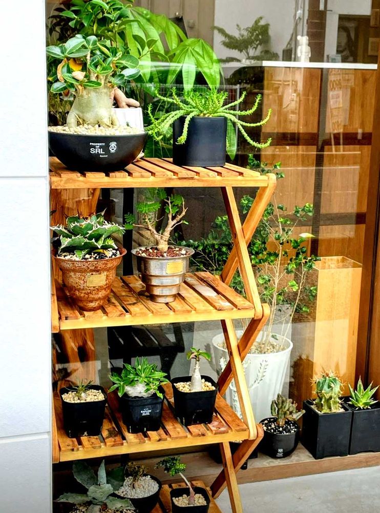 m&oさんの昨日の1枚,多肉植物の棚,通り道の床屋さんの入口横窓にの投稿画像