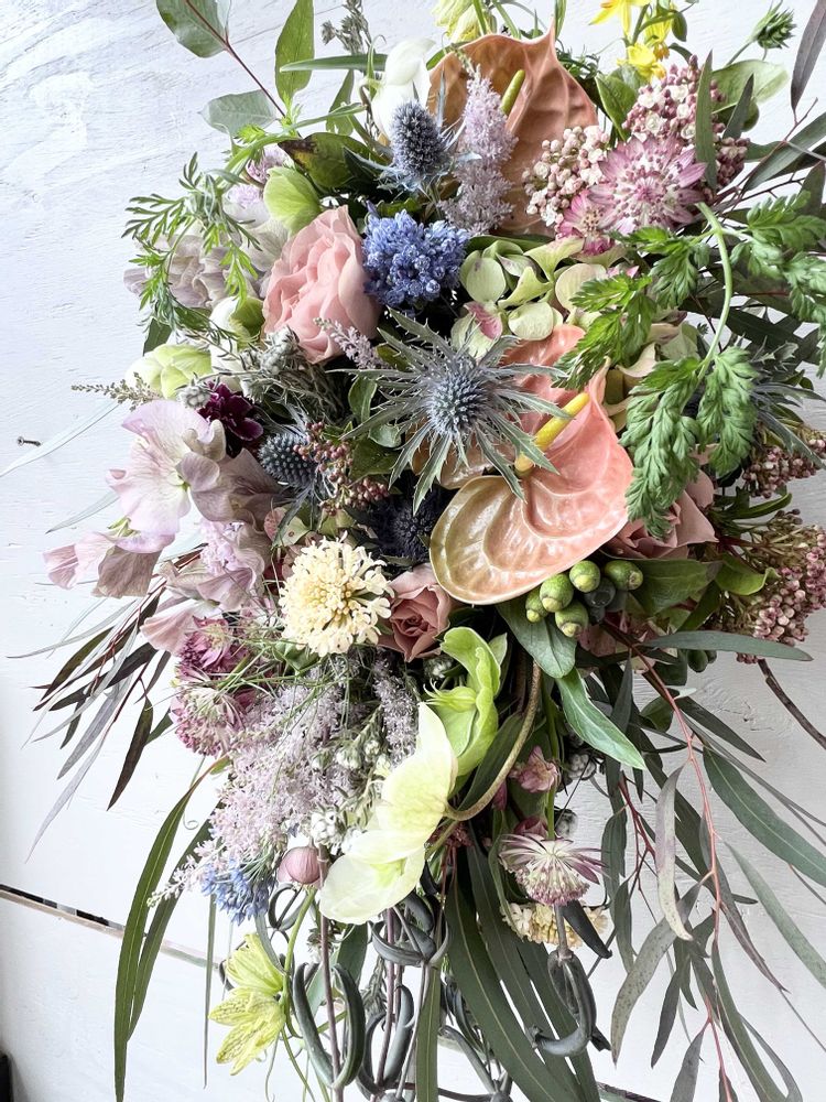 私のイメージでは、ウェディング👰♀️のキャスケードブーケ💐のような型を意識して作ってみたよー♡