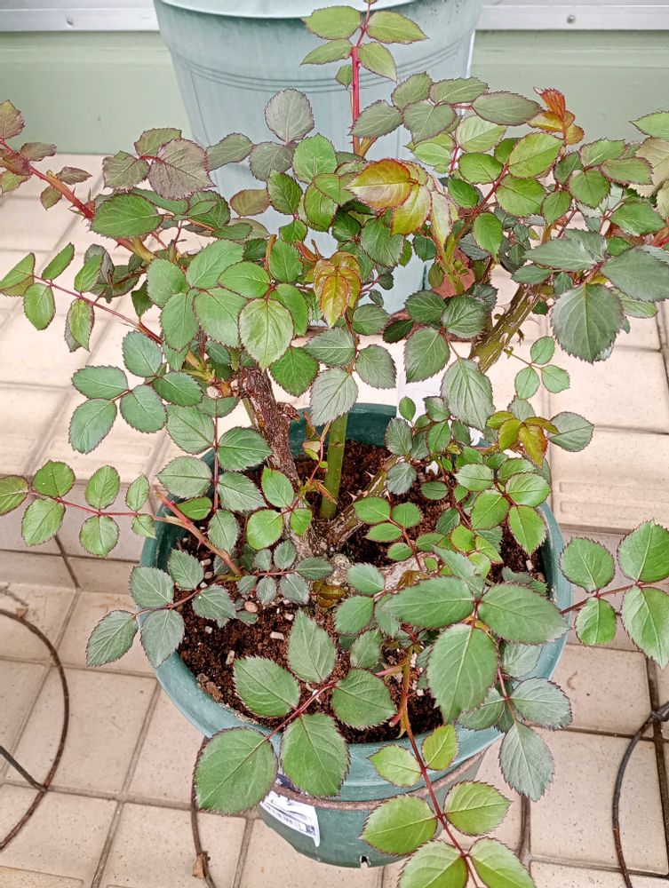 レディエマハミルトンも12号→6号までちっちゃくなっちゃって😭コメリで買ったときはERのあの朝鮮人参みたいな長い太い根だったのに今は国産ノイバラ台木みたいな根だけです😓GSの方が調べてくれて台木が負けてなくなり、自根だけになってるそう💦挿し木みたいな状態ってことですよね😂
