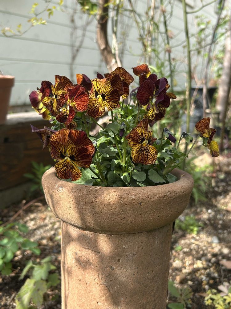 ❷土管植えのビオラ タイガーアイ