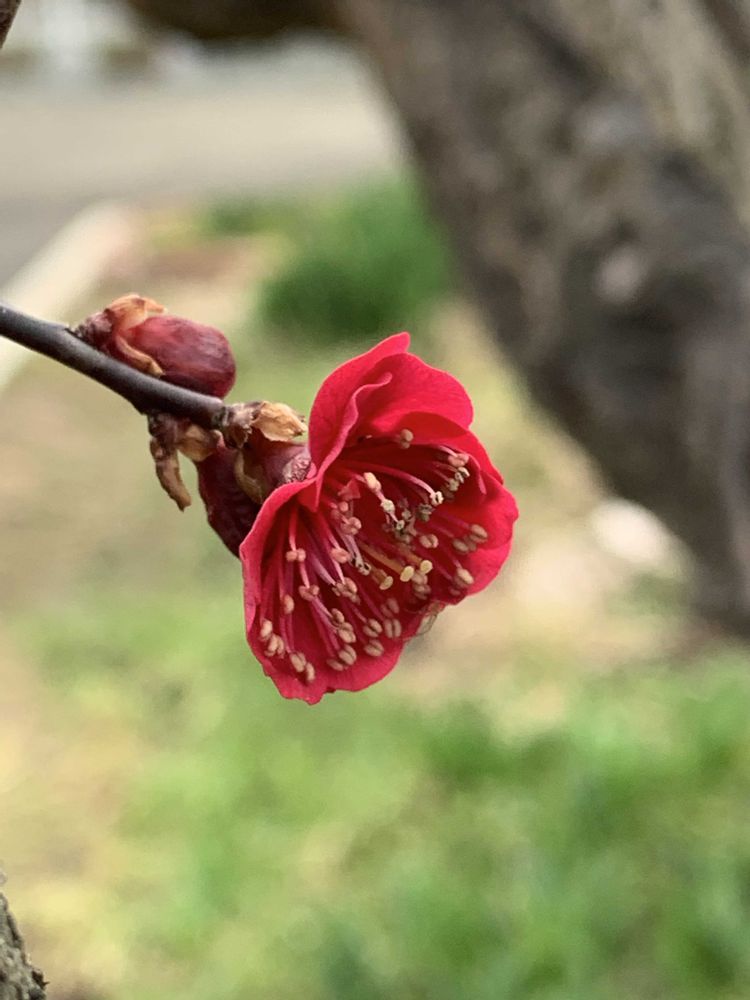 庭の紅梅が咲きました( ´ ▽ ` )