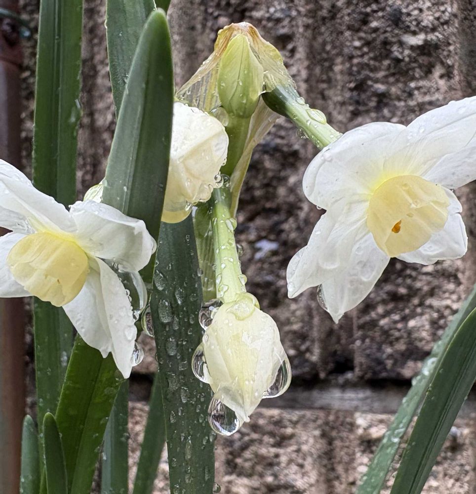 知らない間に、こんな水仙が咲くなんて素敵なお庭😊💕 蕾ちゃん雫を纏って💧美しい〜💧😍
