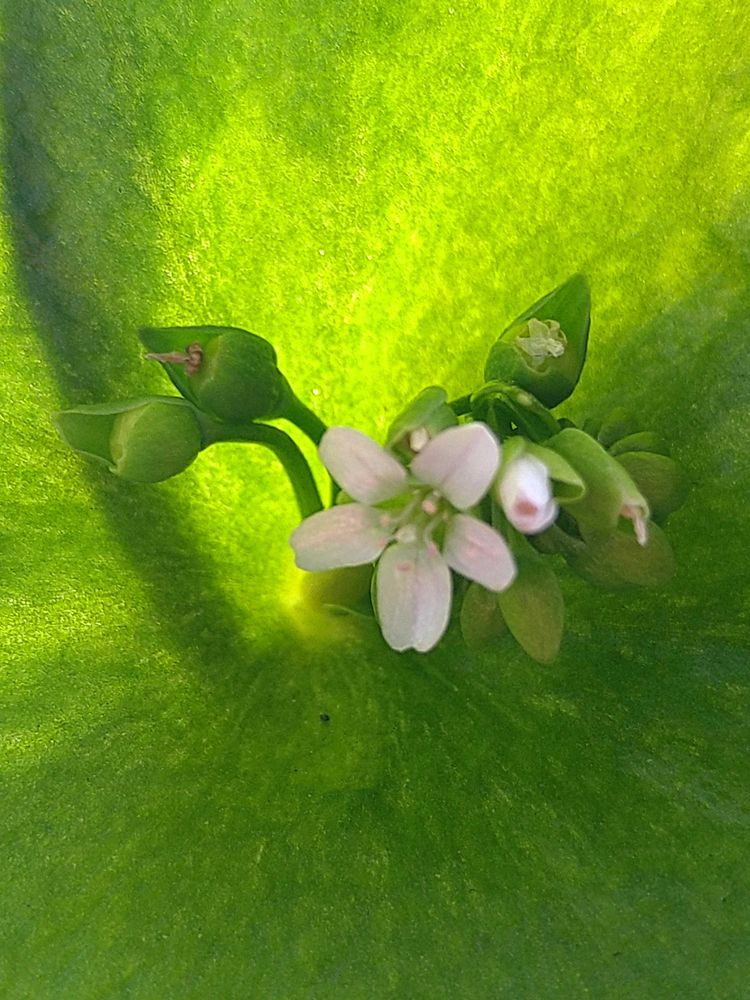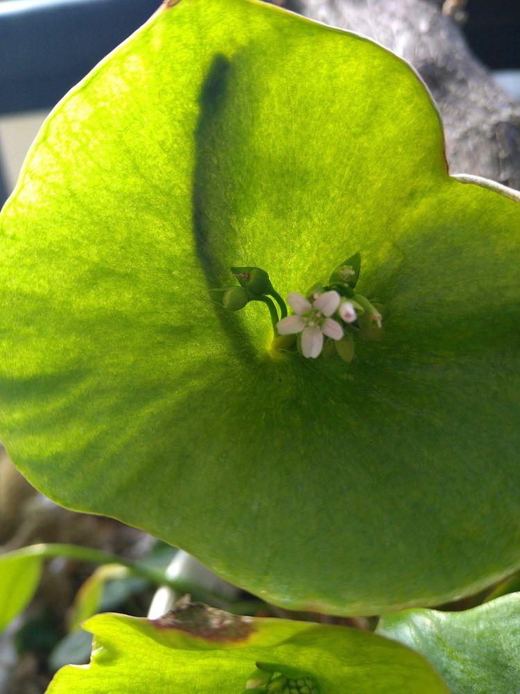 可愛いい花が 葉っぱ🌿の中心から咲くんだね❣️٩( ᐛ )و