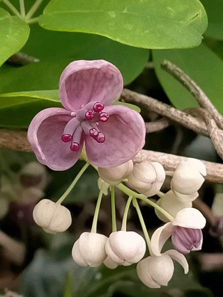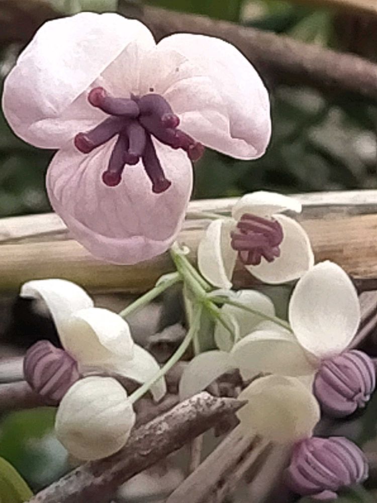 家もアケビの花咲いてるよ😊