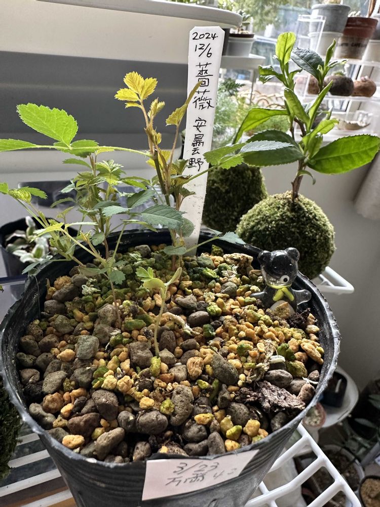 昨年12/6種蒔きのミニ薔薇(安曇野)ビニールポットに平均に蒔いたのにかたまって発芽‼️