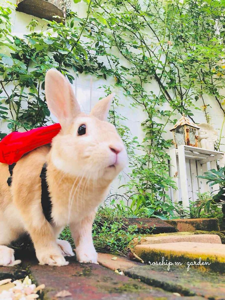 しかし、リュックを背負っても嫌がらないのが凄い!うさんぽ用に首輪をつけようとしたら、もう怒って怒って、僕の腕の肉をえぐられました。笑笑