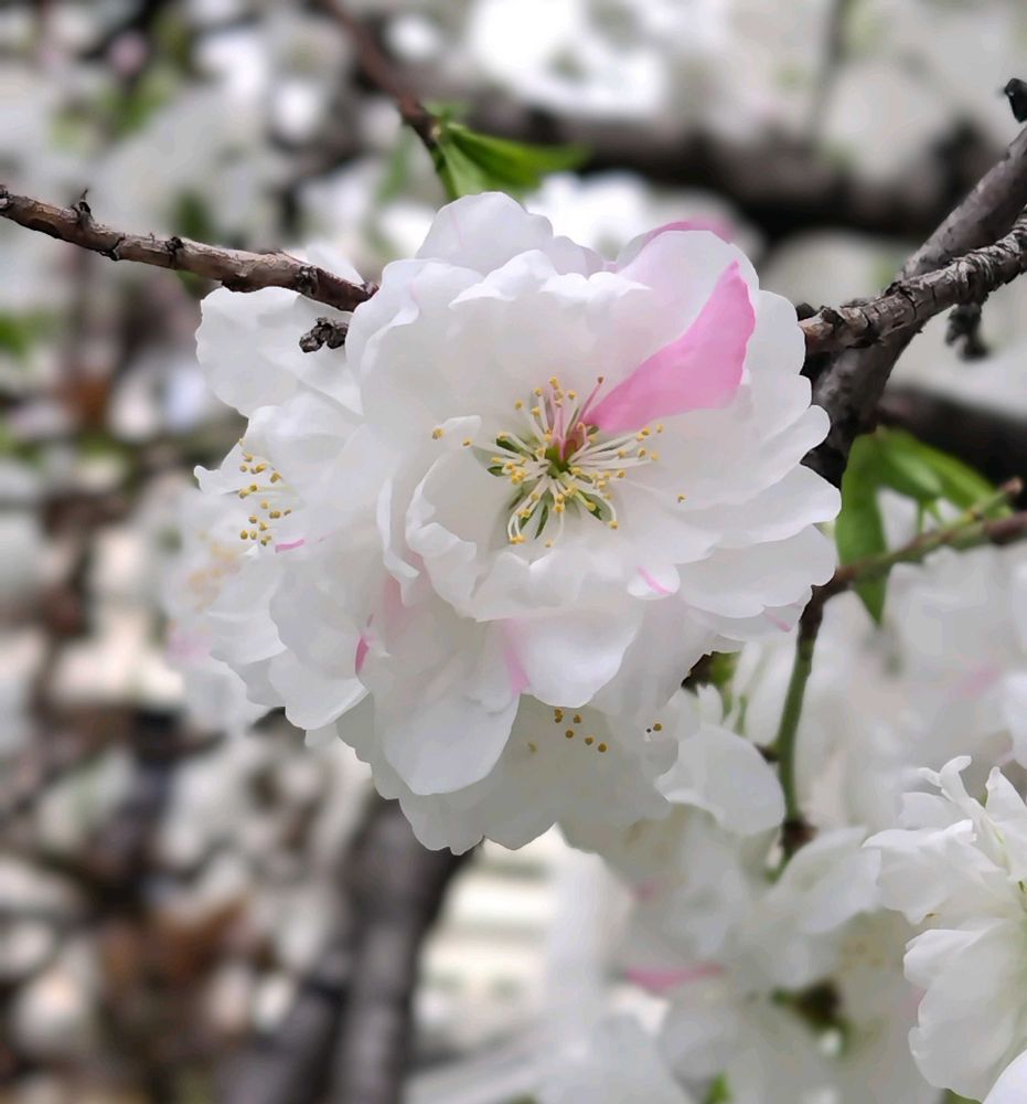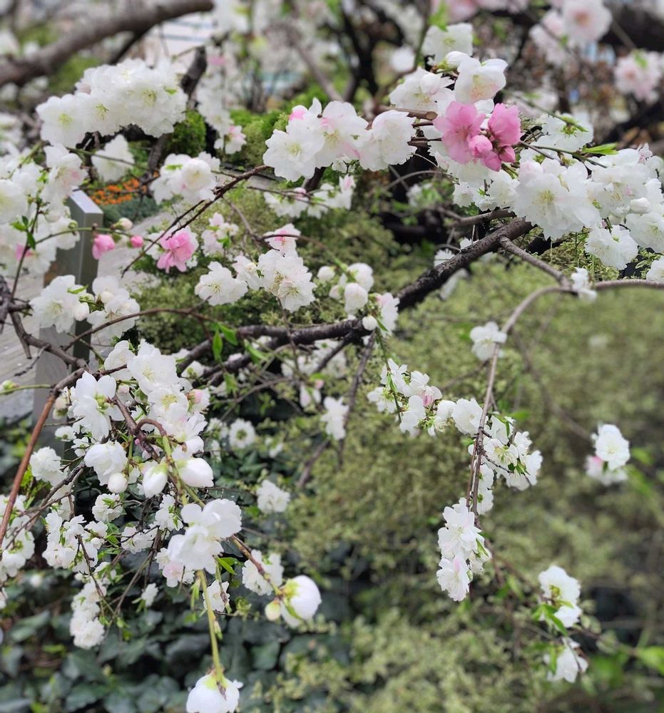 源平咲きのハナモモ🩷🤍🎶