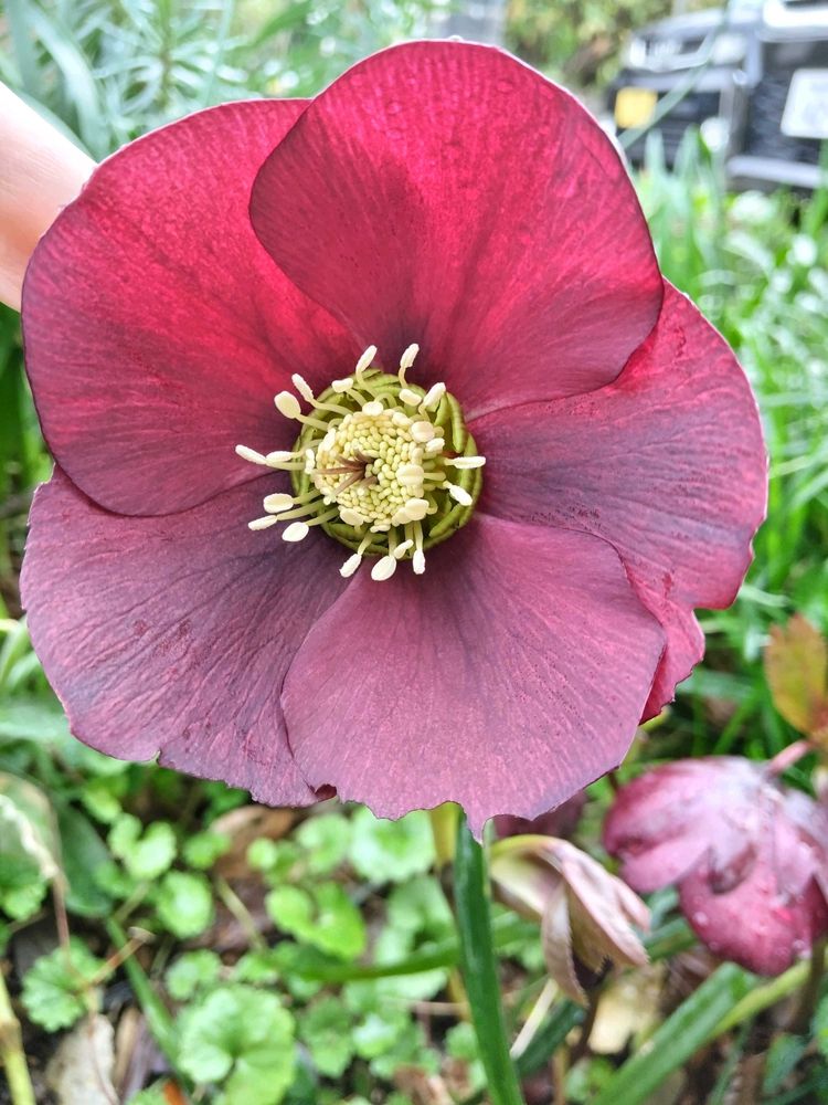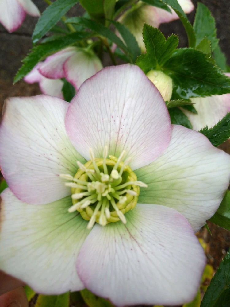 🤍近所の一重のクリスマスローズ、ほんのり縁取りが素敵。