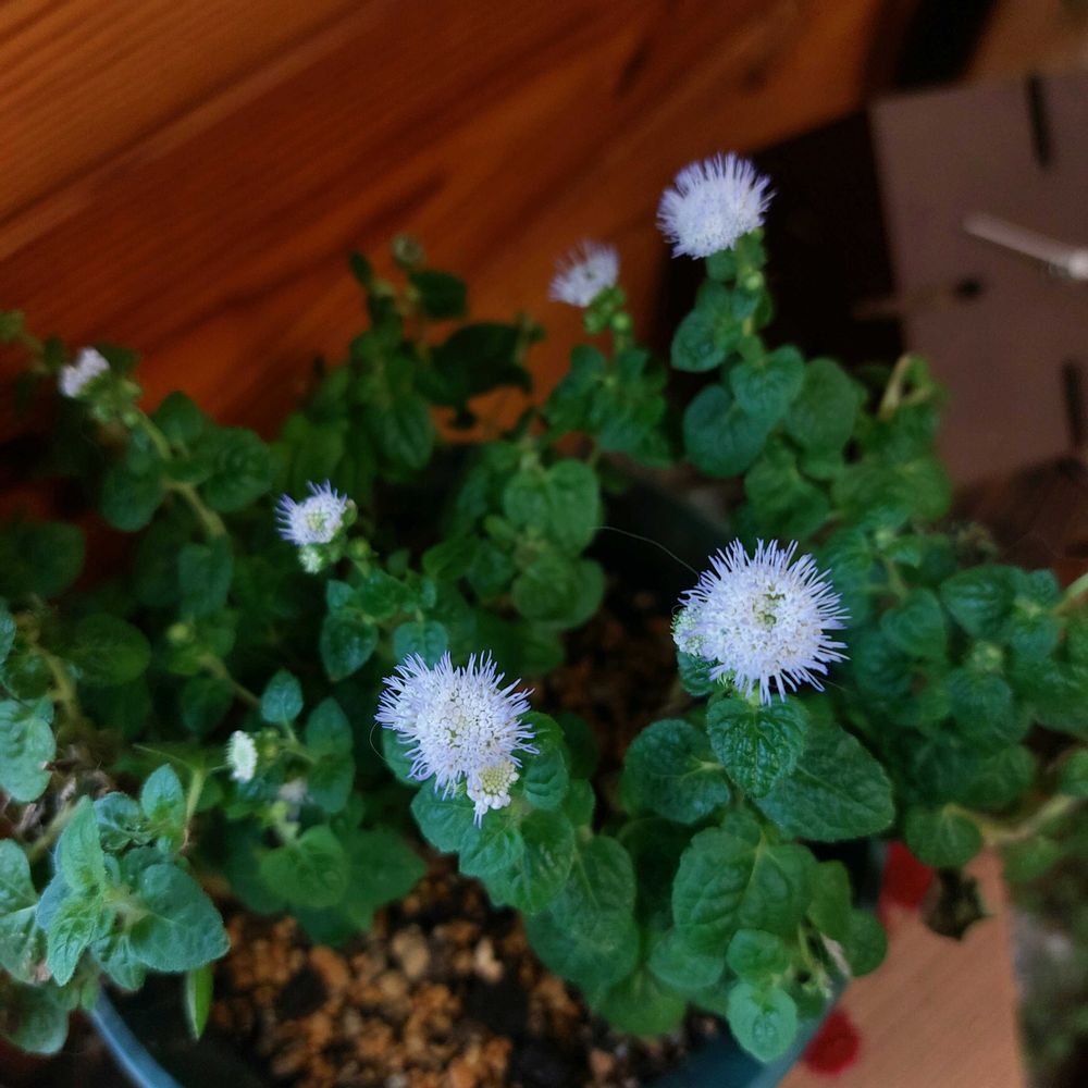 アゲラタムバモス🩵耐寒性無く、一年草と、ありましたが、部屋の中で、二度目の開花😄