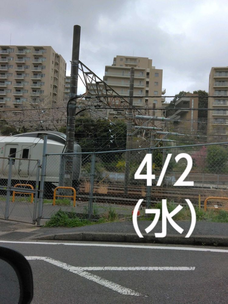 3:JR沿線の向こう側の桜並木を撮す