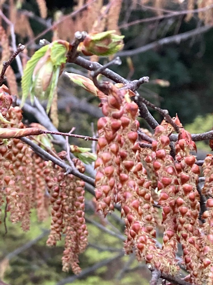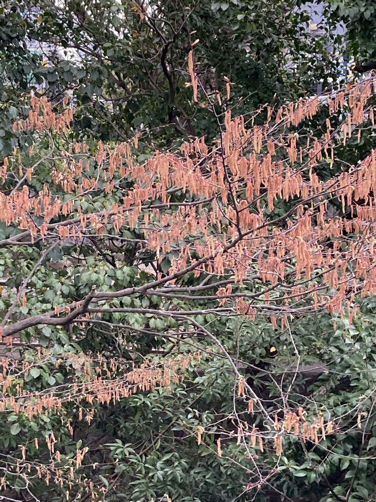 等々力渓谷の崖に自生するハシバミ(?)が目を惹きます。