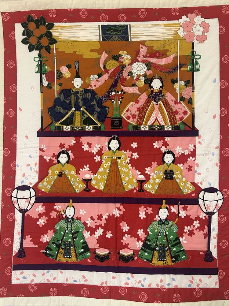 4枚目 ひな祭りのタペストリーは、生徒さんの作品、刺子で作られてます
