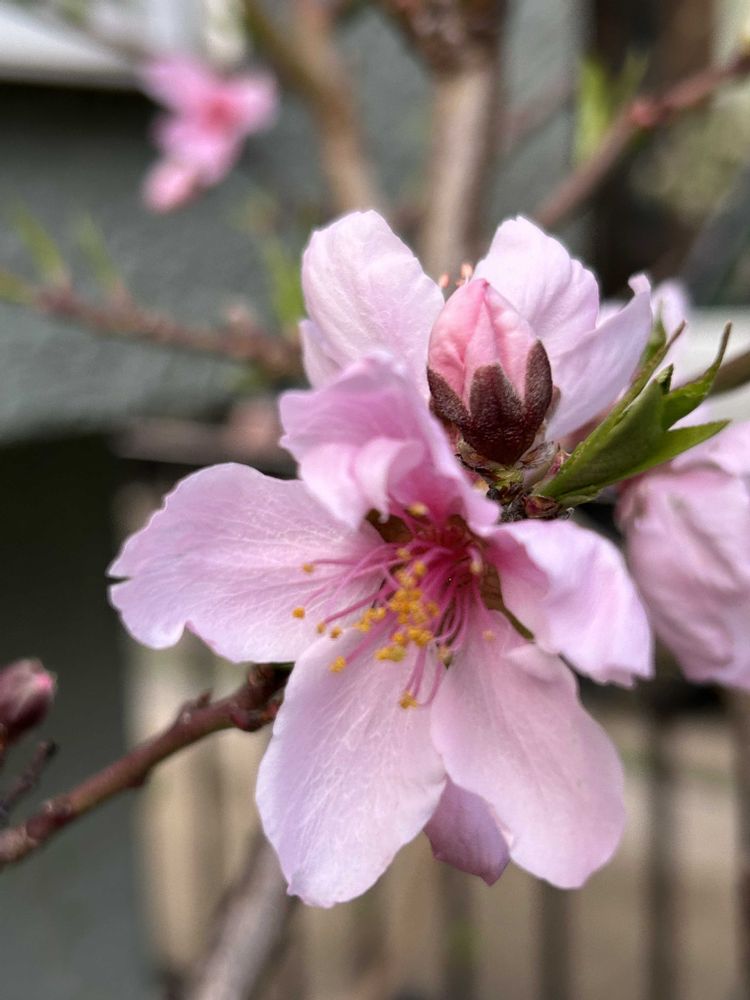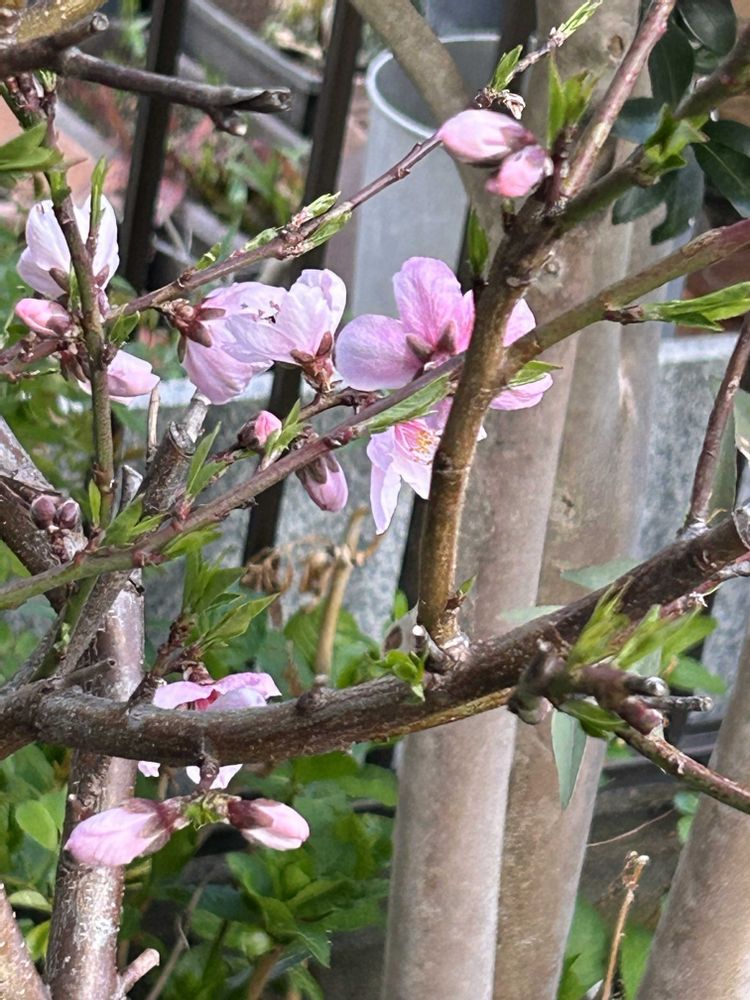 庭の桃の花今年は実がなります様に🩷まだ蕾の小さな我が家の桜の木🌸種類の違うミモザもあと少しです🟡先日買ったラナンキュラス🩷🩷植え替えないと😁