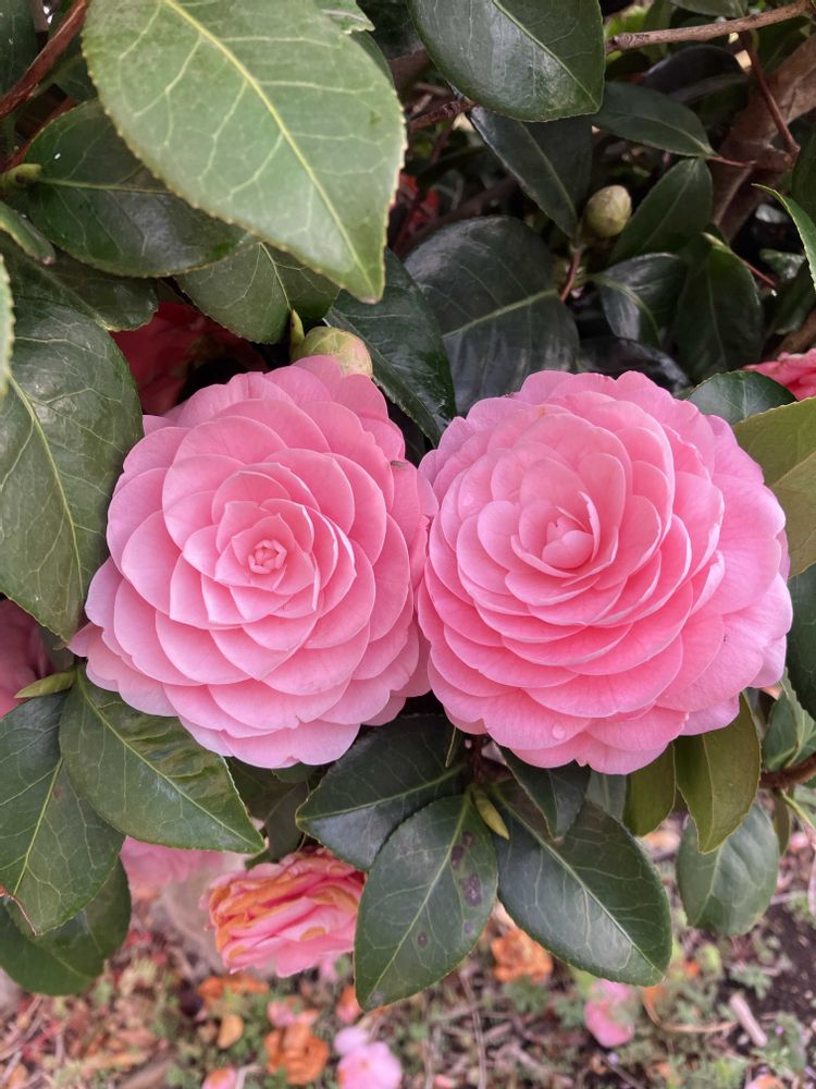 昨日、仕事帰りに、河川敷の小さな公園で出会った乙女椿🌸
