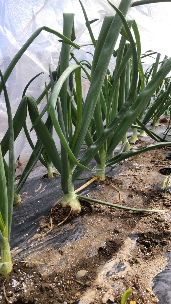 野菜遺産で頂いた極早生玉ねぎ『ソユーズ』やっと膨らみだしました。