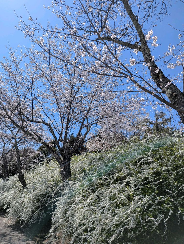 桜とユキヤナギのコラボ!見事ですね😍綺麗〜✧◝(⁰▿⁰)◜✧
