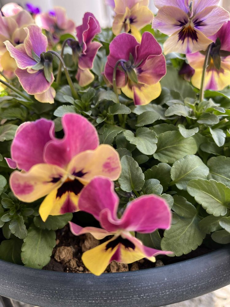 黄色とピンク🩷のビオラです。このような配色も珍しいですねー♪