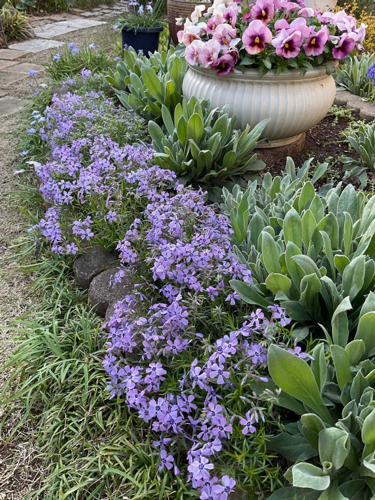 足踏みしていたラベンダー色の芝桜が、やっと 咲きました〜💓🎶