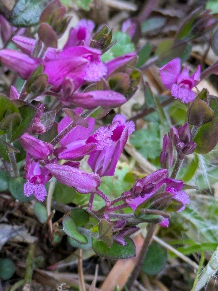 ②朝8時半のヒメハギ 5枚のうち大きい2枚の萼片を閉じています