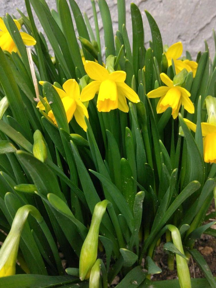 我が家の玄関外で、早く雪のとけた所にやっとスイセンが開花🤗💚💛💚💛💚