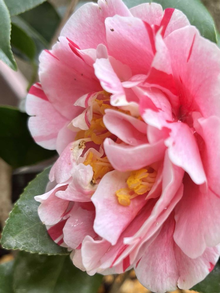 椿・品種不明のコ💕中輪サイズだけど華やかで存在感ありマス(❁´◡`❁)*✲゚*