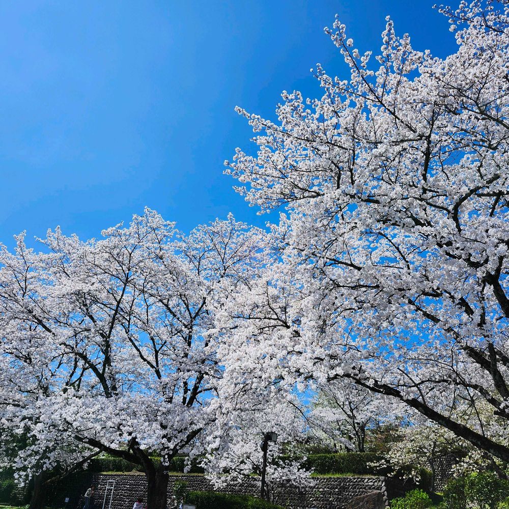 青空に淡い桜が風に吹かれ花弁が舞ってました。