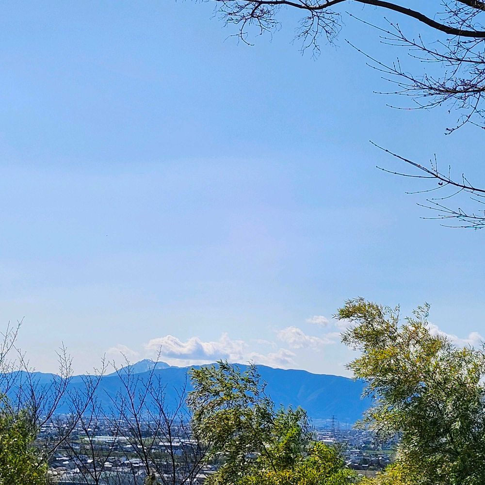 頂上からは、東に金華山(稲葉山)と岐阜城 西は、伊吹山。