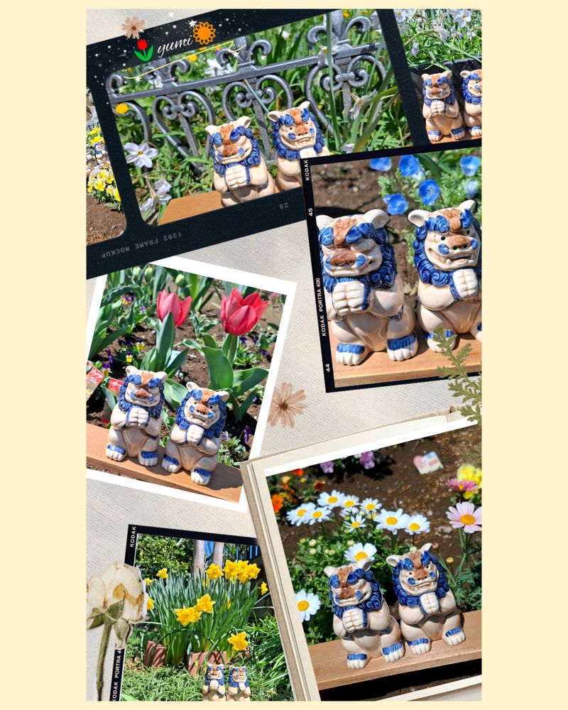 シーサーと可愛いお花のコラージュとても可愛いです😍