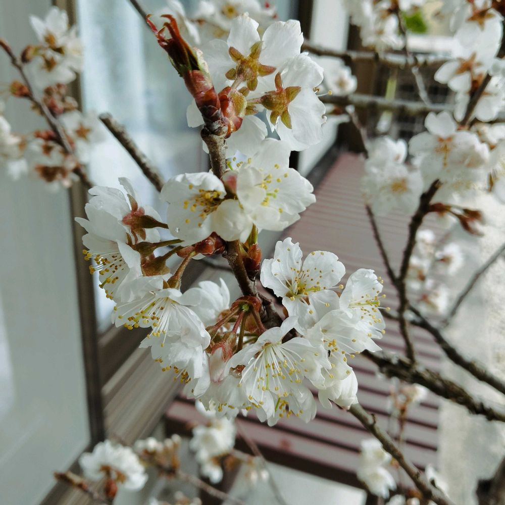 我が家のサクランボの花が満開です🍒🌸