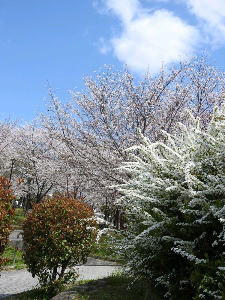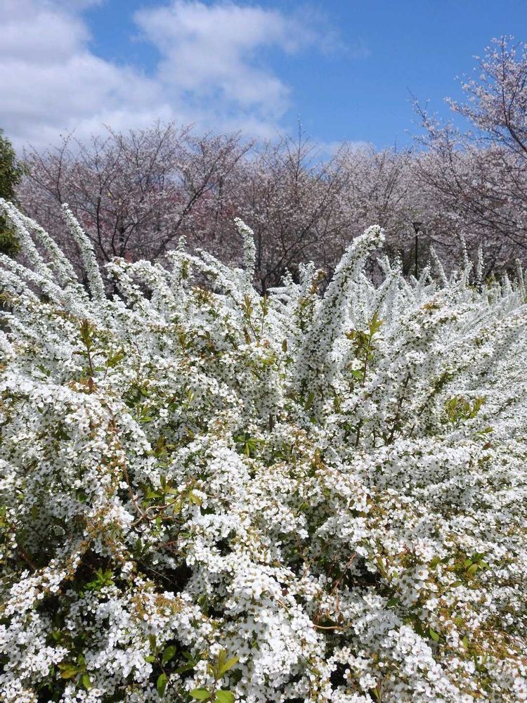 🩵💮🌸ユキヤナギとサクラと青空🌸💮🩵🌸サクラ🌸