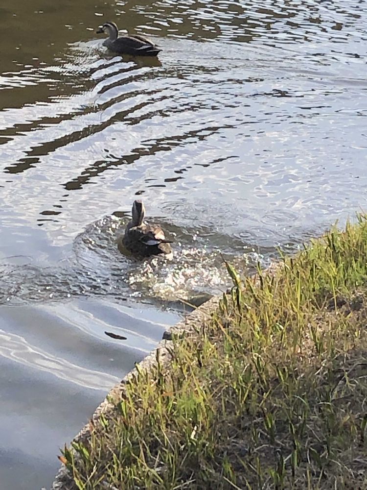 夕暮れ時、近くの池で「ソメイヨシノ」をパチリ!カモさんもいました。📸🌸🦆😄🤗🌇
