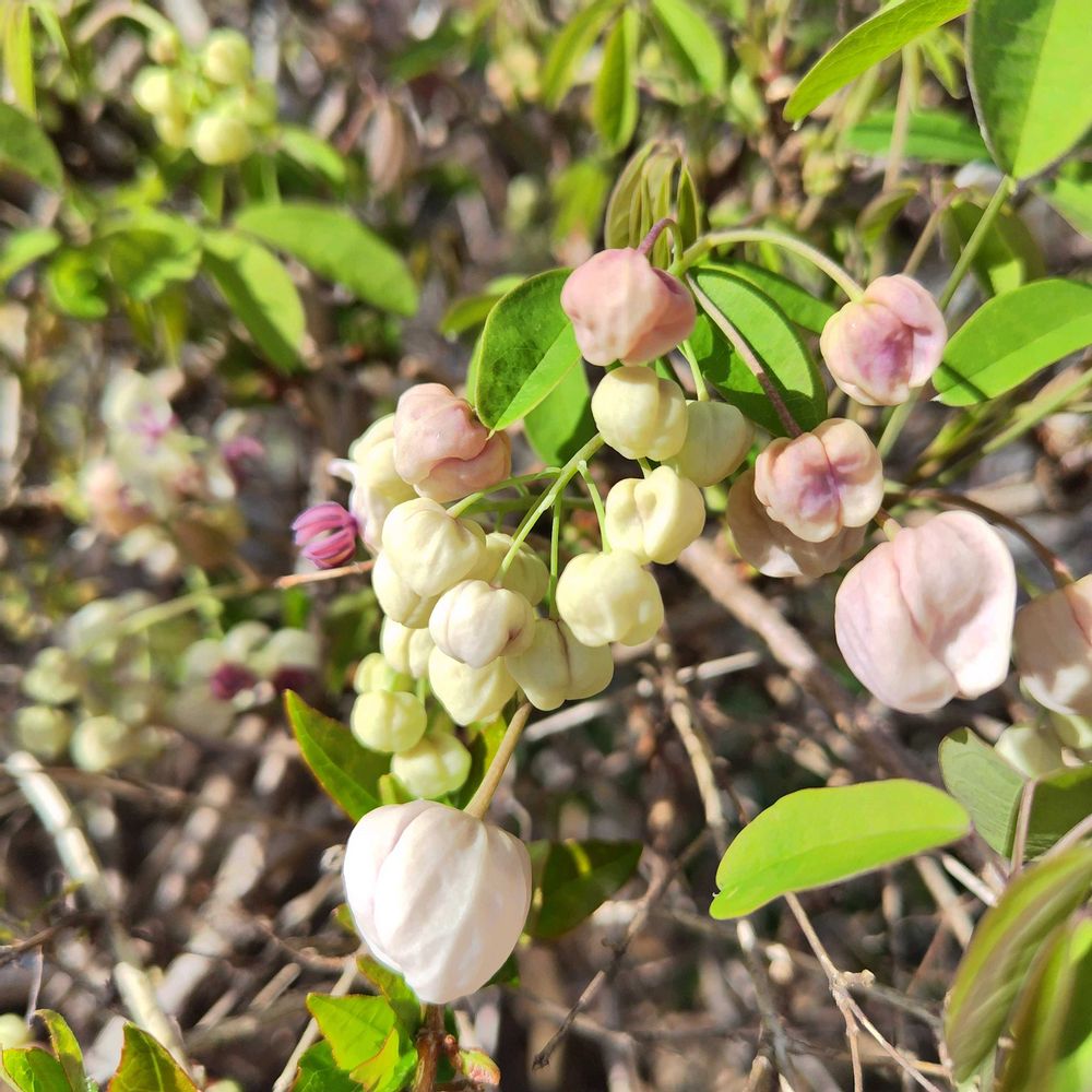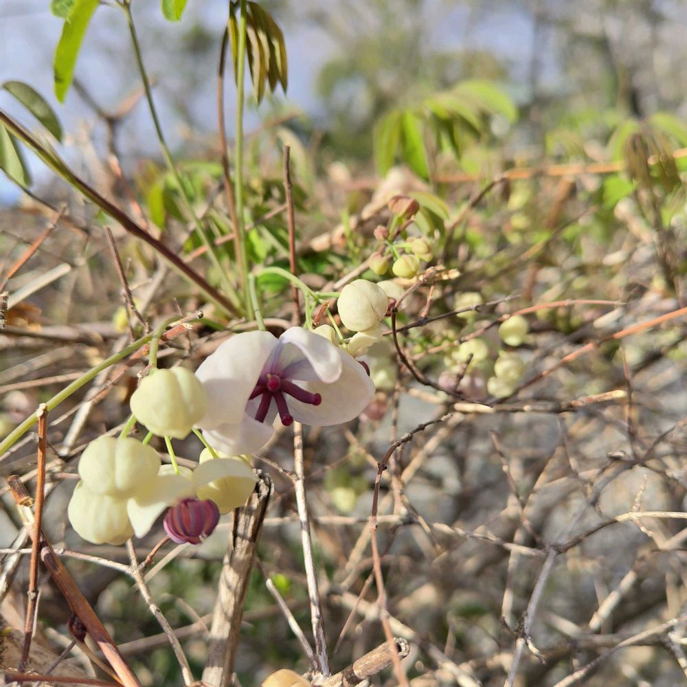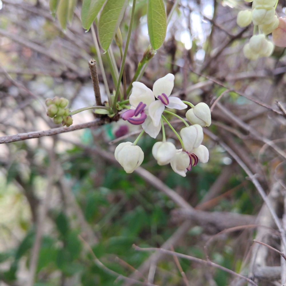 3年目でお花が咲きました♪♬、三葉アケビです。